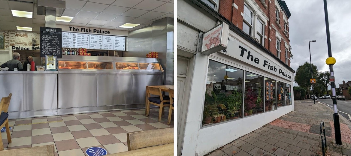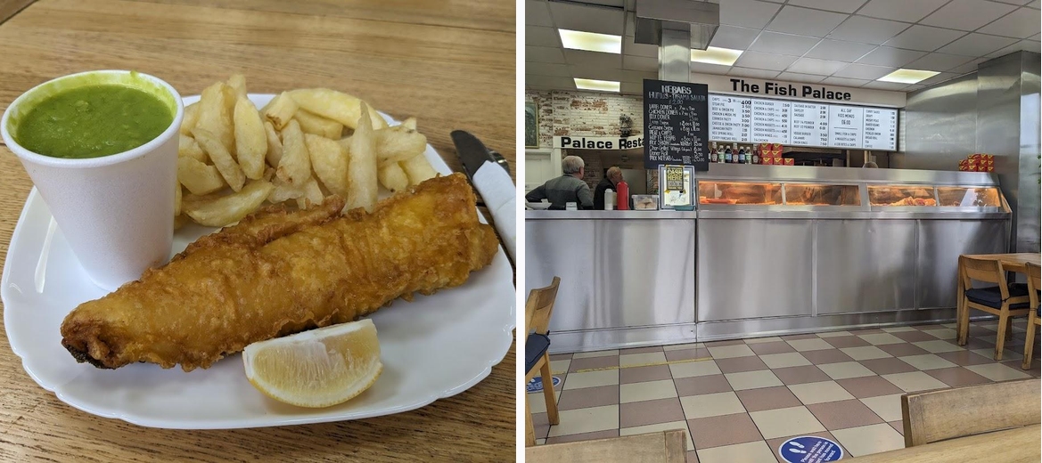 The Fish Palace specializes in fish and chips, offering a variety of options like cod, haddock, and plaice alongside delicious extras like onion rings and mushy peas.