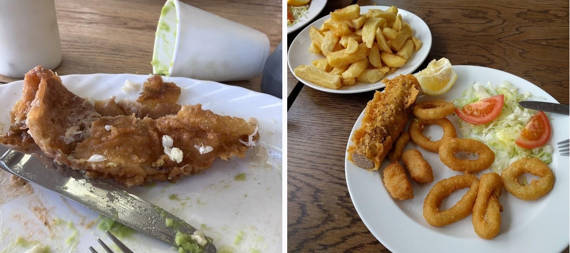 Been here twice now, having only recently discovered it. Been a fish and chip fan since my childhood. These are some of the best fish and chips I've ever enjoyed. Soft , crispy, potato tasting chips. Wow. Ordered a large cod. Wow! Large, fresh fish, not overcooked. Crispy, non oily batter. If it's not good, I take it off and never eat it. Not a chance here, it's just too good. Fresh salad too, presented beautifully. Very clean establishment. Oh, and great friendly, efficient service. Oh, and great value.